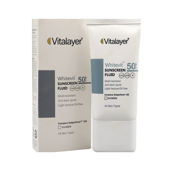 فلوئید ضد آفتاب SPF 50 ویتالیر مدل Whitevit مناسب انواع پوست کدر و دارای لک حجم 50 میلی لیتر - بی رنگ